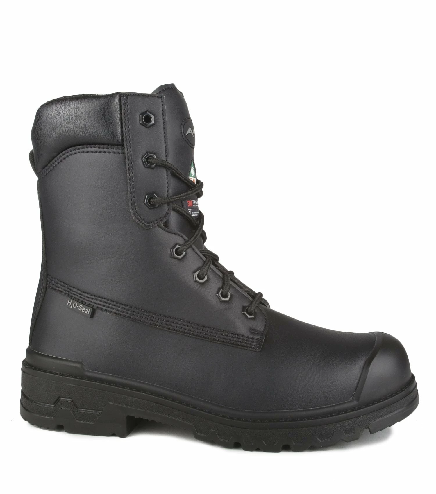 Acton’s Prospect 8″ Black Chemtech Safety Work Boots feature a waterproof microfiber upper with sealed seams, and are resistant to salt, sodium hydroxide, calcium, ammonia, manure, chlorine, oil and cold cracking.
