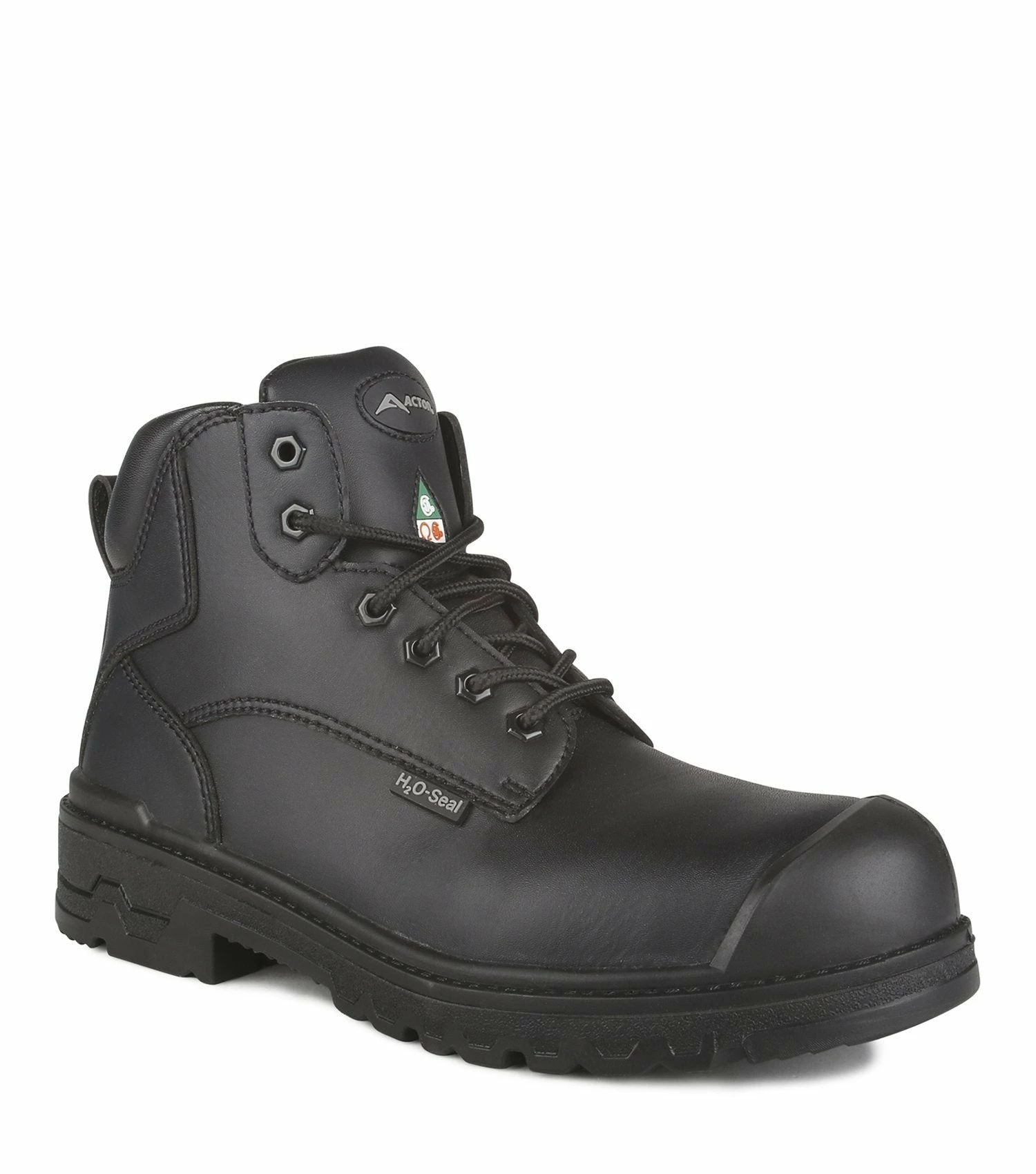 Acton’s Profiber 6″ Black Chemtech Safety Work Boots feature a waterproof microfiber upper with sealed seams, and are resistant to salt, sodium hydroxide, calcium, ammonia, manure, chlorine, oil and cold cracking.