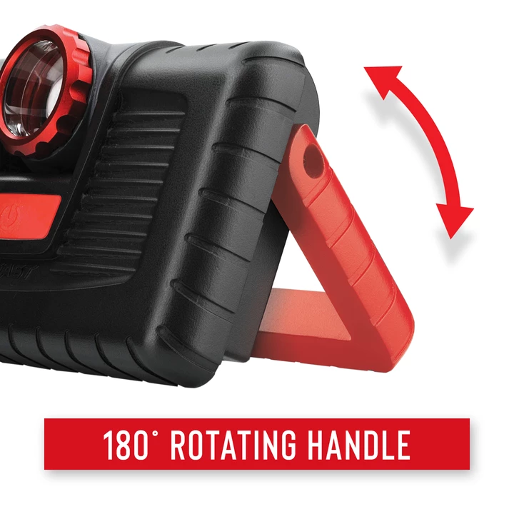 Take task lighting up a notch. With a max run time of 79 hours, the COAST PM310 work light shines up to 1000 lumens and features a magnetic handle that swings on a 180-degree arc—so that you can use it like a lantern handle, hang it up, or attach it to a metallic surface.