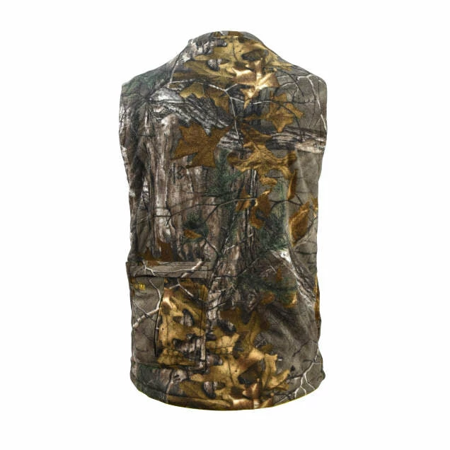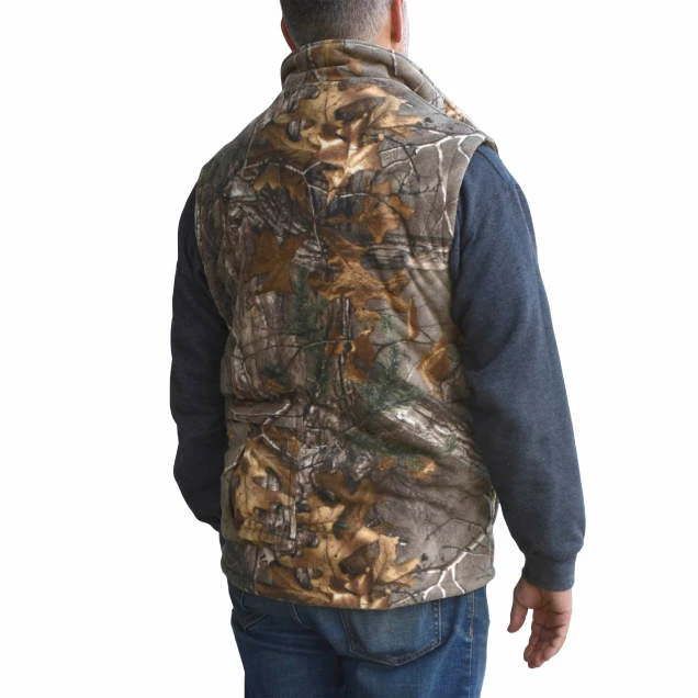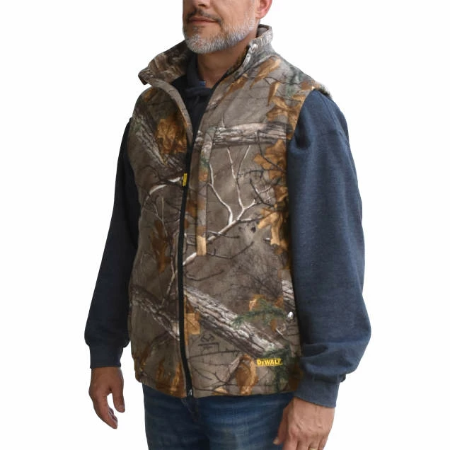 Whether you’re hunting in the woods, working outdoors, or tackling a DIY project when it’s cold outside, the DEWALT heated fleece vest allows you to control your comfort in the cold without a lot of bulk that restricts mobility. The heated fleece vest features a noise-free Realtree Xtra® camo design outer shell and a soft polyester fleece inner shell. This battery-powered vest delivers hours of core body warmth and continuous heat making it suitable for numerous activities, including landscaping, farming, tailgating, hiking, and more.