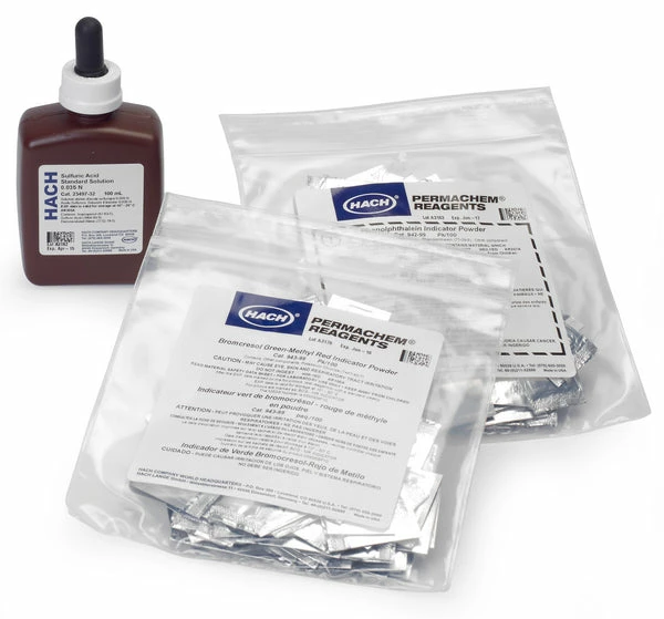 For alkalinity determination by drop-count titration. Replacement reagent set for Alkalinity AL-AP Test Kit (Item # 2444301)
