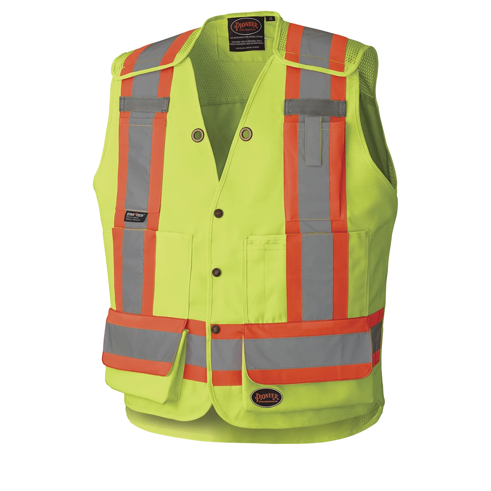 Hi-Vis Work Wear Pioneer Hi Viz Drop Shoulder Poly/Cotton Tear-Away Surveyor’s Safety Vest | Sizes Small – 4XL