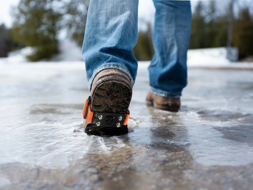 - Adjustable strap and replaceable cleats provide excellent traction on snow and ice