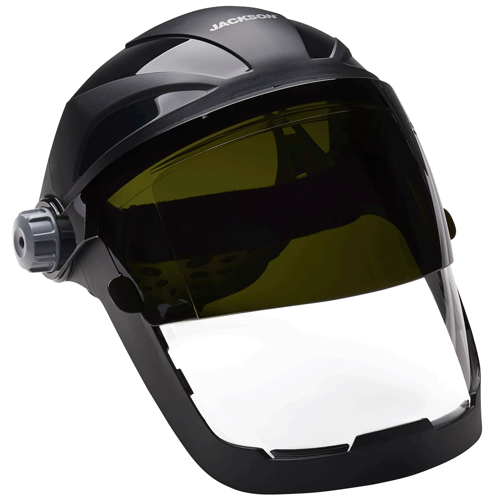 Jackson Safety Jackson Quad™ 500 Supreme Multi-Purpose Face Shield Kit With 370 Speed Dial™ Ratchet System – Clear Anti-Fog Window With Flip-Up IR Visor