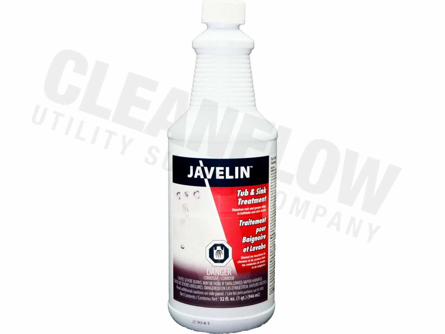 Javelin Tub and Sink Drain Treatment is the strongest liquid alkaline, non-sulfuric drain opener on the market.