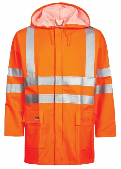 - Flame Retardant Hi-Vis Rain Jacket in heavy PU/PVC quality