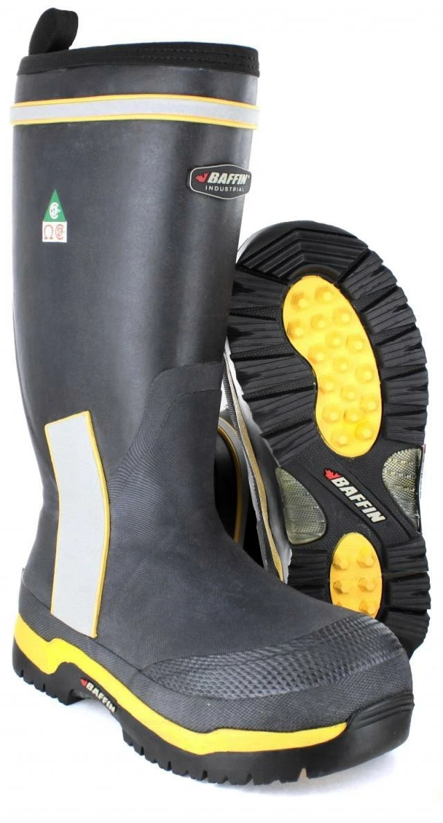 Baffin Cyclone Hi-Vis Waterproof Winter Safety Work Boots have CSA/ASTM approved safety toe, plate and metatarsal protection and Hi-Vis accents for additional safety. They have a temperature rating: -40ºC/-40ºF. Rubber is extended to the top of the boot to increase protection from chemicals and the environment.