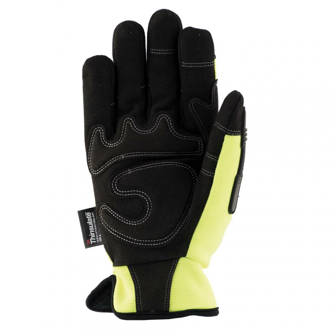 Terra Hi-Vis Yellow Mechanic’s Thinsulate Winter Work Gloves have a synthetic double palm. They are insulated with C100 3M Thinsulate for fall and winter cold weather protection.