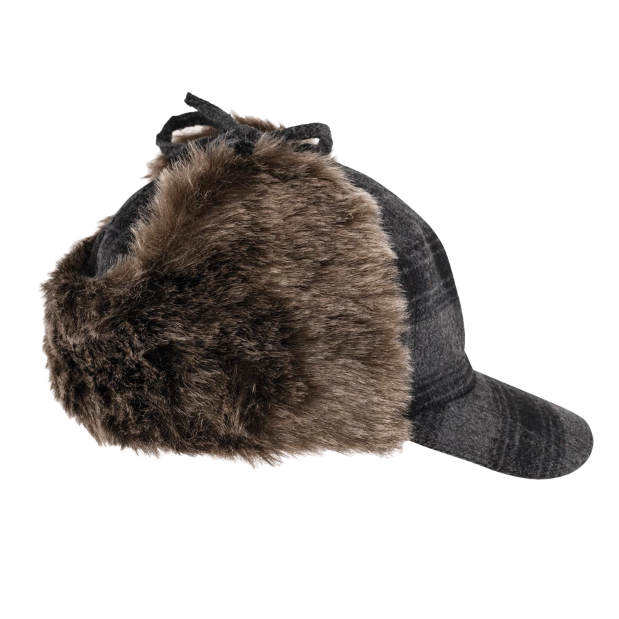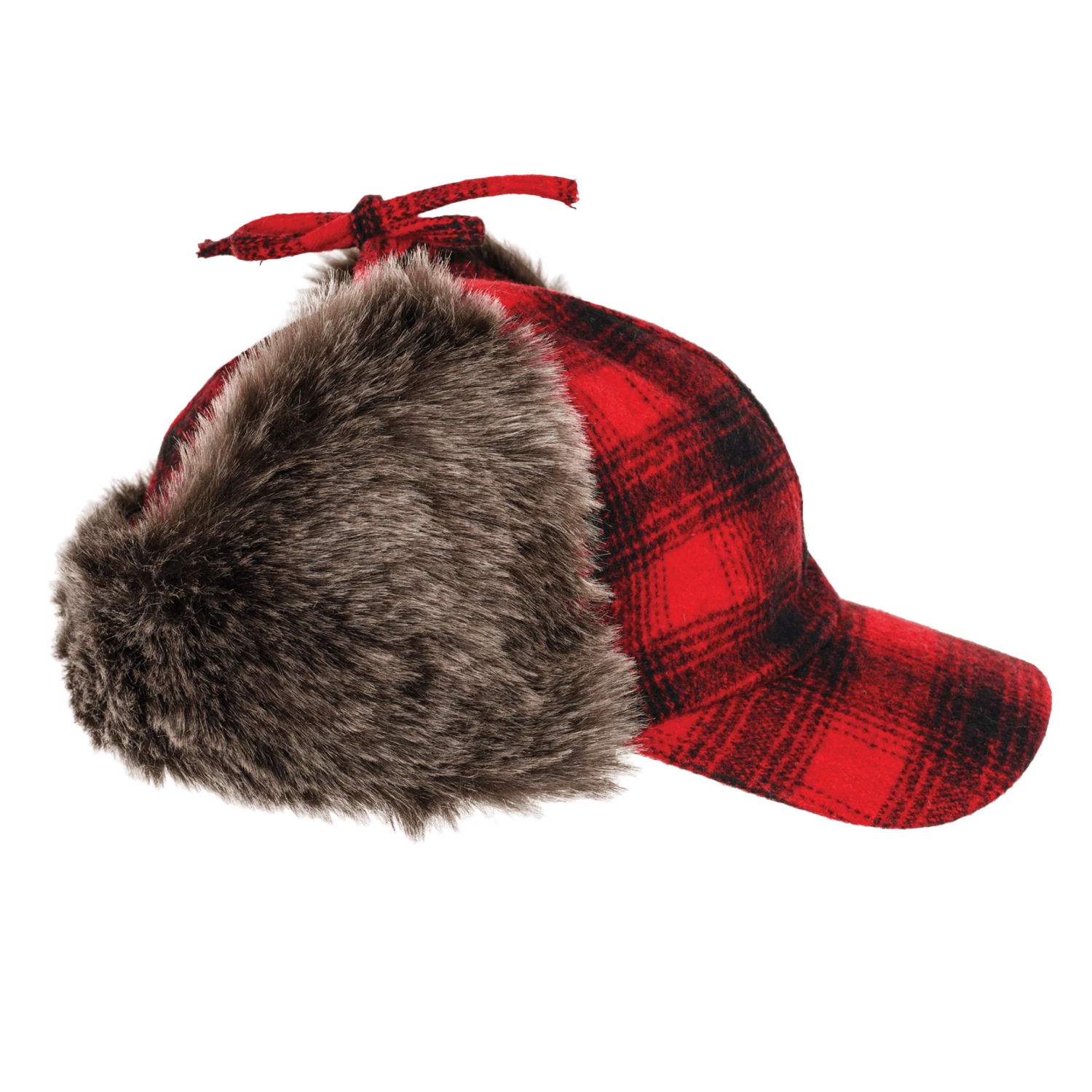 - 95% polyester, 5% wool with faux fur trim ear flaps