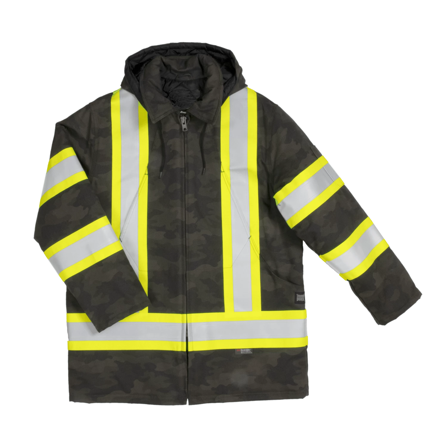 Just because you have to wear enhanced-vis on the jobsite doesn’t mean you’re limited to black or navy. Our heritage is duck Hydro Parkas, this one adds reflective tape, a green camo pattern and a DWR finish to make it all new.