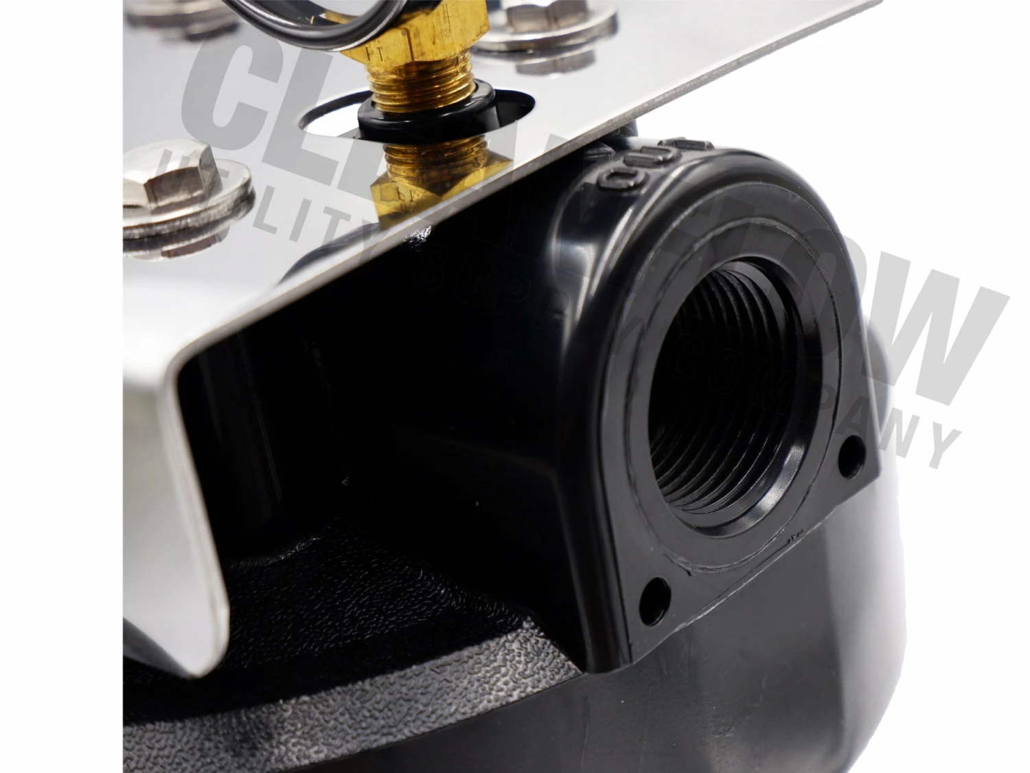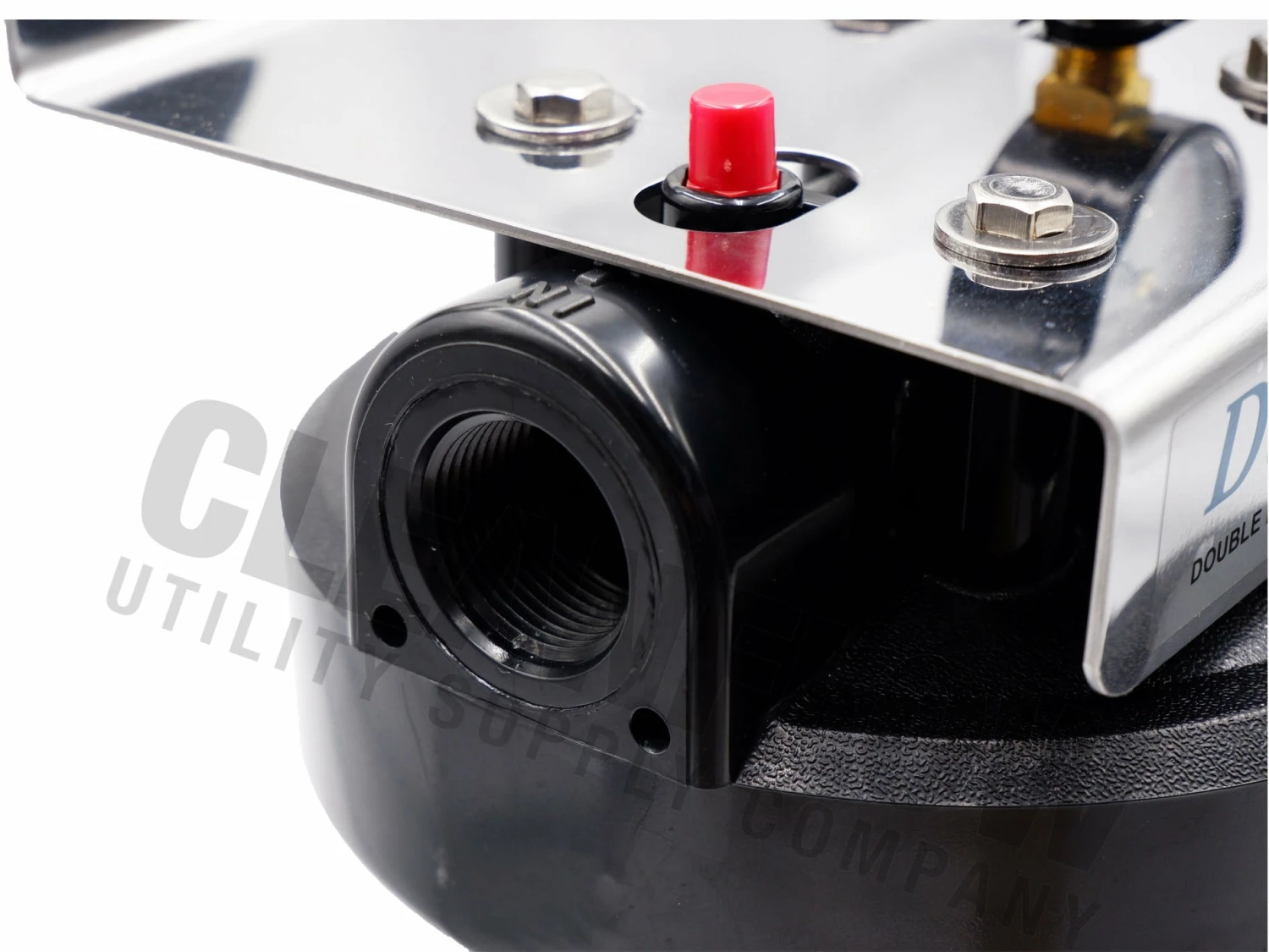 These twin water filter housings accept any brand of 10″ long 4.5″ OD Big Blue water filters including Waterite, Harmsco, GE Osmonics, Flomatic, Pentair, Clack and Watts.