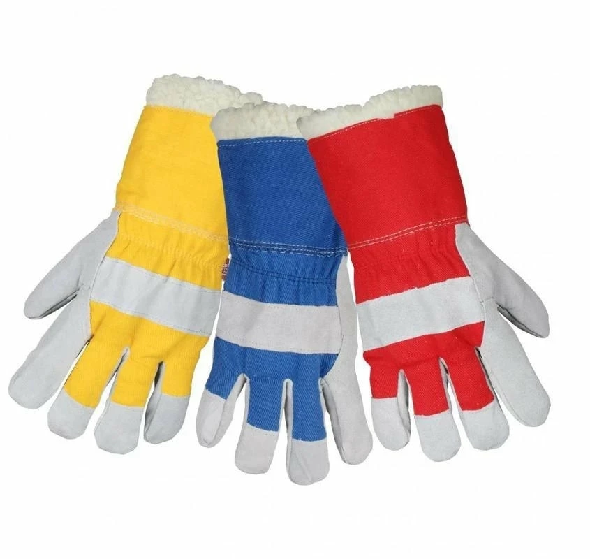 Horizon Pile Lined Cowsplit Waterproof Barrier Leather Winter Work Gloves come in a pack of 6 gloves in assorted colors – Yellow, Blue and Red.
